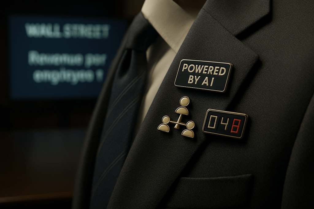 Here’s the novelty Fortune surfaced: the act of cutting jobs—when explicitly framed as AI-enabled—has become a way to project managerial discipline. Investors have been rewarding early movers, not for austerity in the abstract, but for an operational stance that says, “We have found real, automatable work, and we are not waiting.” The economics are familiar; the communication strategy is new. Announcements increasingly pair an automation milestone with a “re-architecting” update, making headcount the tangible proof that software is actually delivering savings. In the background, a new scoreboard is emerging. Revenue per employee becomes the public metric, and a lower corporate headcount is not a side effect—it’s the emblem.