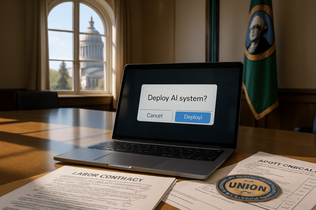 The headline from Sunday isn’t that a state discovered AI. It’s that a state is experimenting with who gets a vote when AI arrives. If Washington funds and enacts this—and if other states import the idea—the national posture shifts. Instead of treating AI as a managerial prerogative moderated by after-the-fact grievances, we start treating it as a shared choice made at the point where code meets compensation. That won’t solve every problem, or stop every bad system. But it changes the default, and defaults are destiny in bureaucracies.