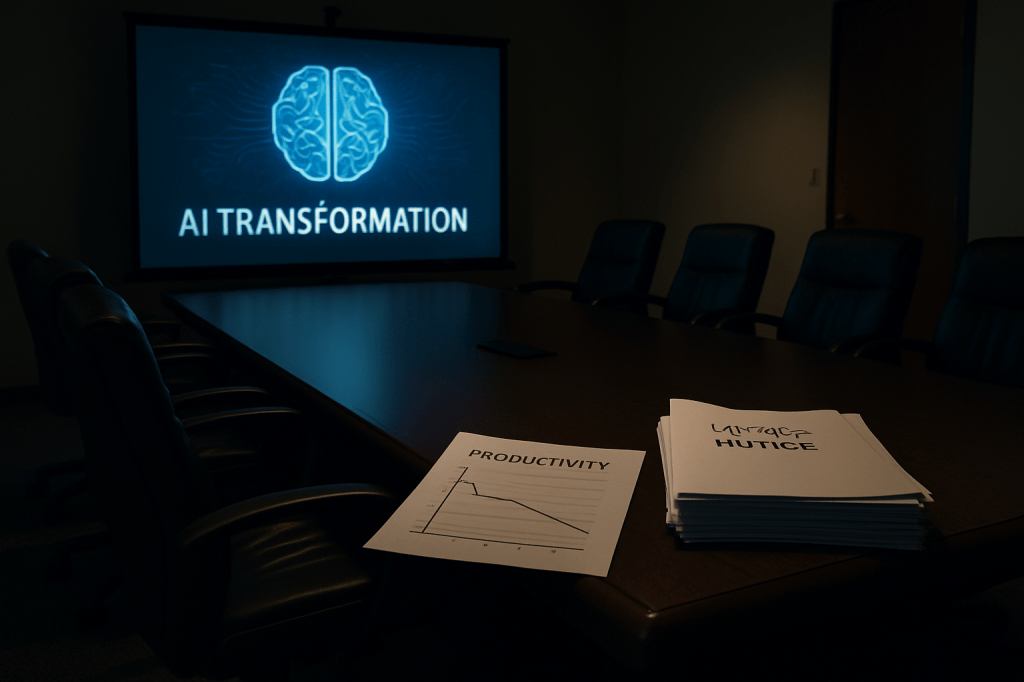 For boards, this is an uncomfortable mirror. Announcing an AI pivot is easy; delivering its dividends is not. You can’t conjure productivity by press release. Without the unglamorous plumbing—clean data, re-engineered processes, clear guardrails, redesigned roles—headcount cuts are just headcount cuts, and the credibility gap widens when the promised efficiency fails to materialize. Treat the word “AI” like you would “profit”: only say it when you can show it.