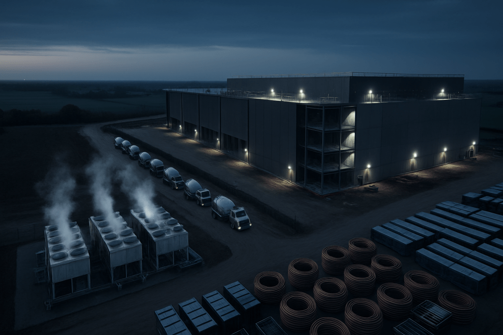 Walk the edge of any county now sprouting server barns and transmission towers and you can hear the sound of artificial intelligence before you ever see a line of code. It’s the hum of temporary chillers, the rattle of ductwork, the steady rhythm of concrete trucks backed up before sunrise. For all the discourse about large language models replacing keystrokes, yesterday’s most important data point came from the other end of the AI stack: the people pulling wire, balancing air, and pouring pads are getting paid more where the data centers rise fastest.